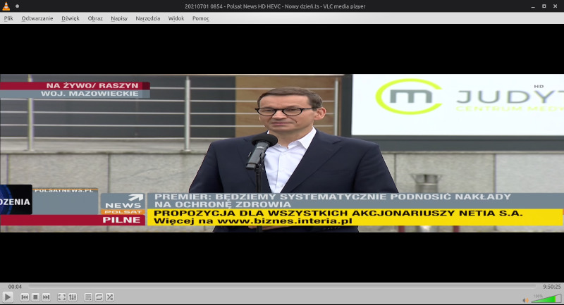 Nietypowa rozdzielczość Polsat News HD HEVC - odtwarzacz VLC