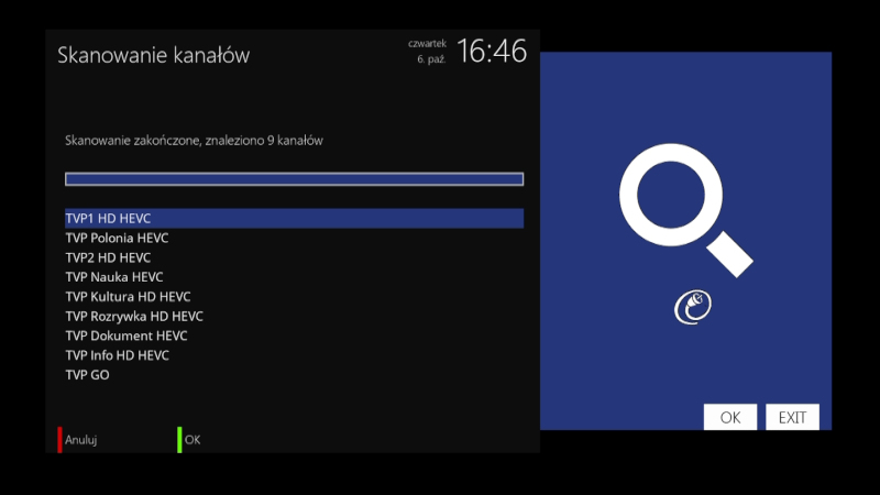 Część odbiorników sama wyszuka nową pozycję pod numerem 20 listy kanałów (przy włączonym sortowaniu LCN) - jeżeli tak się nie stanie, należy zrobić automatyczne lub ręczne wyszukiwanie kanałów (czyli tylko częstotliwości, na której nadaje testowy multipleks w naszym regionie).