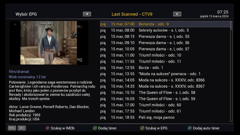 W piątek 15 marca br. - parę chwil po północy - włączono testową emisję kanału CTV9. To nowa telewizja o profilu filmowo-dokumentalnym - dostępna w ogólnokrajowym MUX-8 (DVB-T, pasmo VHF).