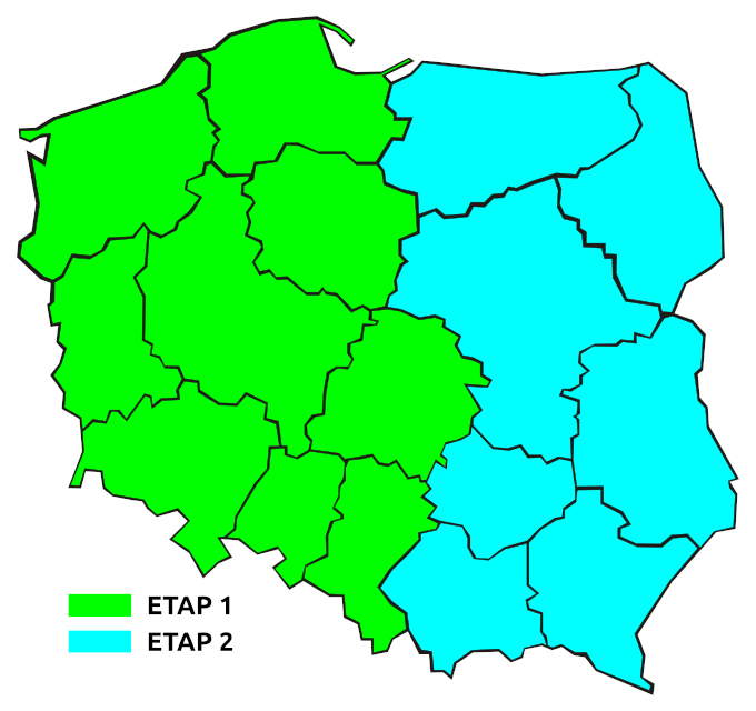 Etap I - noc z 14 na 15 grudnia br. (noc z czwartku na piątek) - obejmie 9 województw: dolnośląskie, kujawsko-pomorskie, lubuskie, łódzkie, opolskie, pomorskie, śląskie, wielkopolskie, zachodniopomorskie.