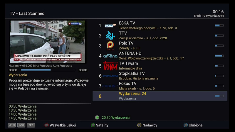Kilka minut po północy 10 stycznia br. doszło do dwóch zmian w naziemnej telewizji cyfrowej w Polsce. Kanał informacyjny Wydarzenia 24 - do tej pory dostępny w MUX-4 - został przeniesiony na MUX-1, natomiast w dotychczasowym miejscu pojawił się nowy program Polsat News Polityka. Oba programy dostępne są bezpłatnie.